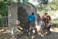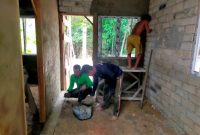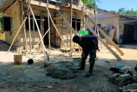 Sertu Arifin Bersama Warga Gotong Royong Memplester Rumah Ibu Zahara di Desa Tanjung Hutan Karimun — Anggota Satgas TMMD ke-126 Kodim 0317/TBK, Sertu…