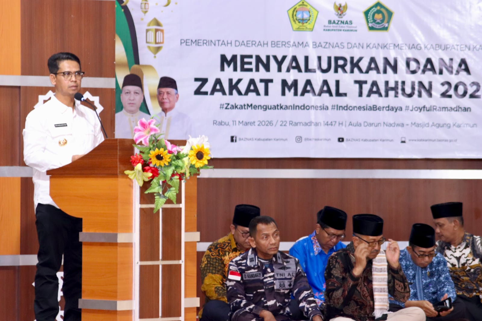Karimun, 11 Maret 2026 – Dandim 0317/TBK, Letkol Inf. Andit Franata, S.I.P, menghadiri acara penyaluran Zakat Maal Tahun 2026 yang diselenggarakan oleh Baznas Kab. Karimun di Aula Darun Nadwa Masjid Agung Karimun, Jl. Jend Sudirman (Poros), Kel. Meral Kota, Kec. Meral, Kab. Karimun Prov Kepri.