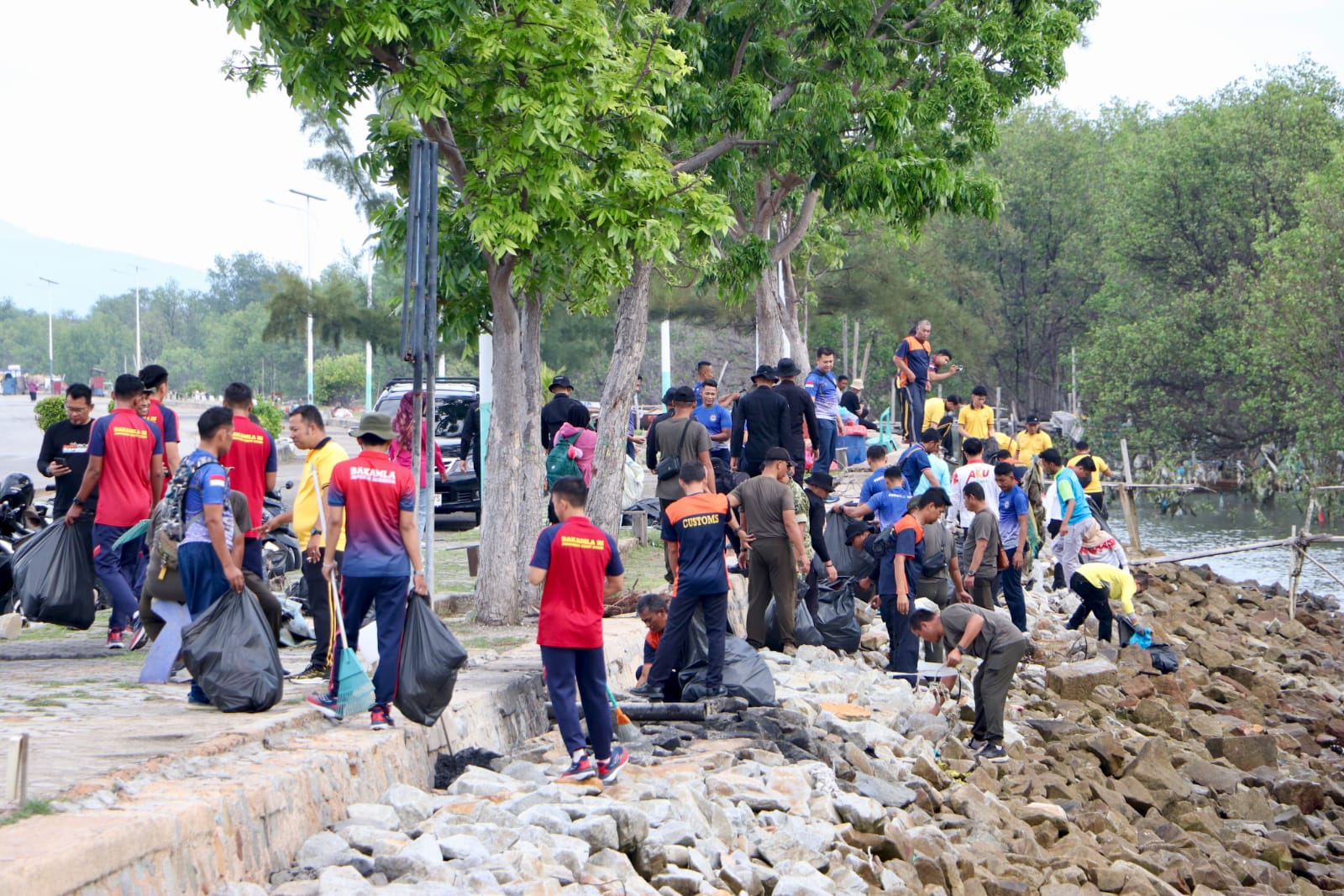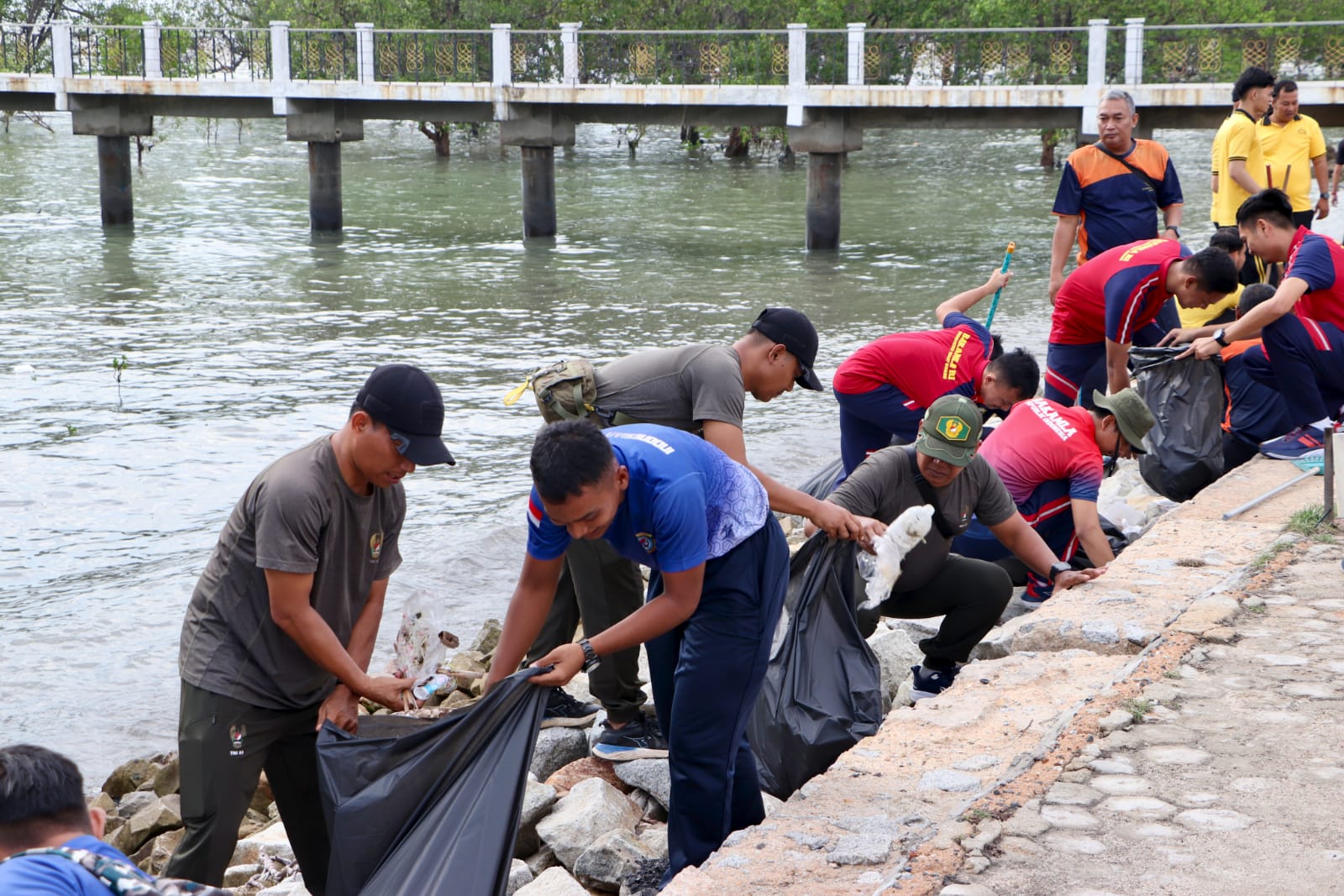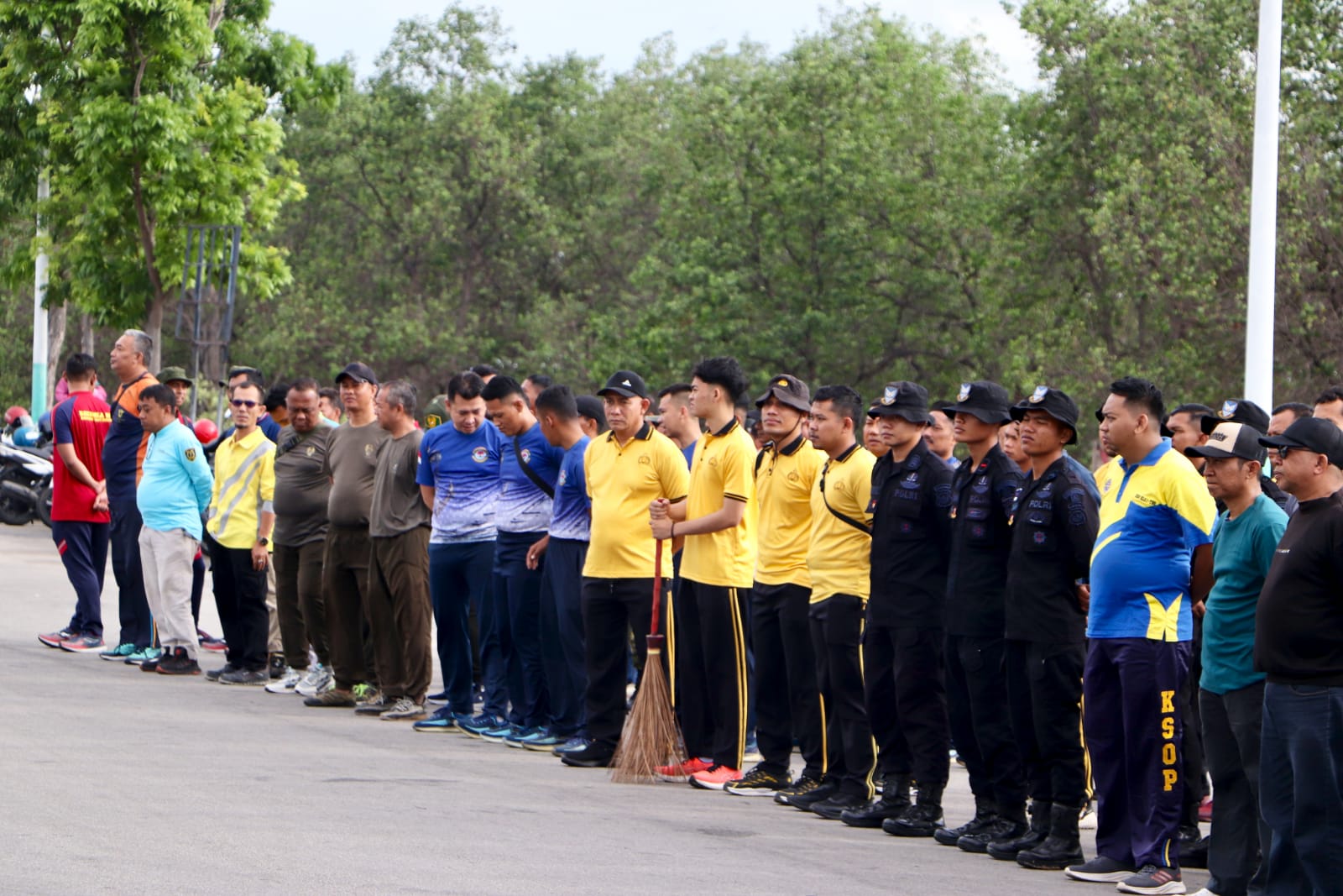 Dipimpin Danramil 01/Balai Kapten Inf Kamdi mewakili Dandim 0317/TBK, personel Kodim bersama unsur TNI AL, Polri, dan instansi pemerintah melaksanakan apel, senam pagi, hingga pembersihan lingkungan secara gotong royong. Total peserta yang terlibat sekitar 210 orang.