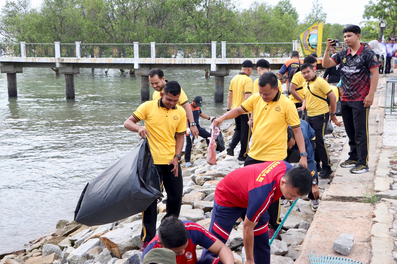 KODIM 0317/TBK PELORPORI KERJA BAKTI GERAKAN INDONESIA ASRI WUJUDKAN KARIMUN BEBAS SAMPAH