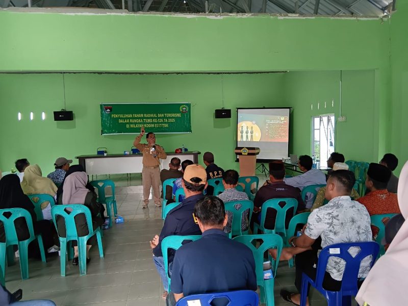 Bertempat di Balai Desa Tanjung Hutan, Kecamatan Buru, Kabupaten Karimun, Kodim 0317/TBK menghadirkan narasumber dari Badan Kesatuan Bangsa dan Politik (Kesbangpol) Kabupaten Karimun), yaitu Bapak Sugiono, S.Ag., MM, yang menyampaikan materi bertema “Terorisme dan Radikalisme”.